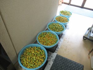 今年は全国的にも梅が豊作であり、ここ日吉台でも約8kgの梅を譲って頂けました。