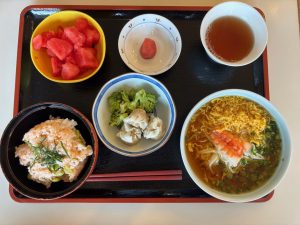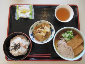 前回の記事で御紹介した当施設の梅干し漬けですが、今回は完成した梅干しを用いた夏の献立についてレポートします。