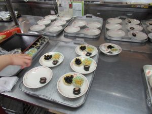 調理スタッフに加えて管理栄養士も準備に参加し、お互いに協力することで安全と栄養バランスに配慮したお食事がご利用者様へ届けられました。